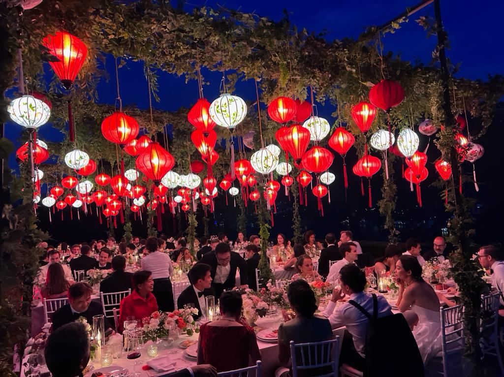 Big silk lanterns are used for wedding tent decor, wedding gate decor,...