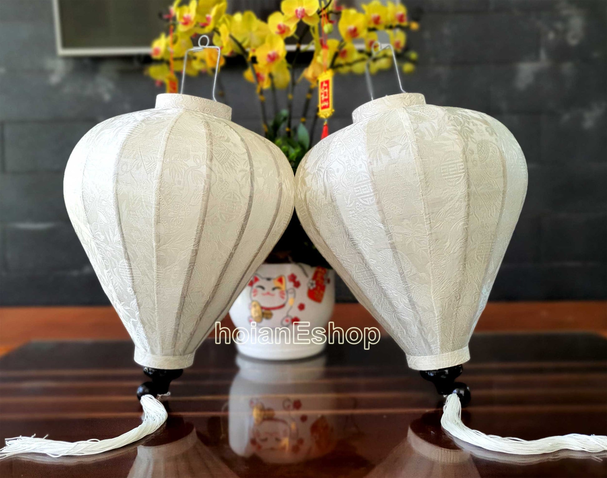 Set 2 Vietnam Ivory White Silk Lanterns for Wedding Party decor (55cm) Garlic White Lanterns for Events Decorative